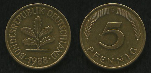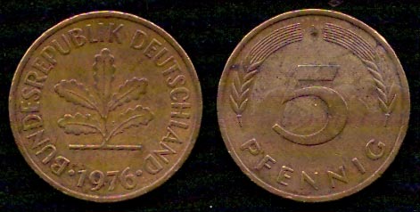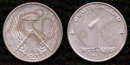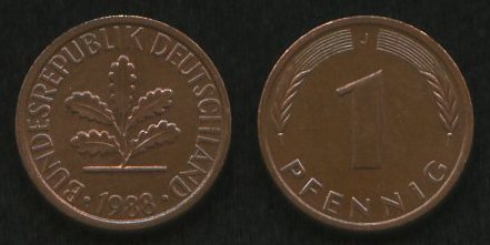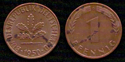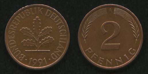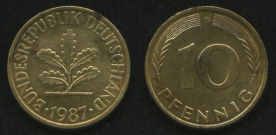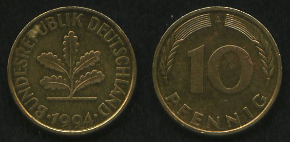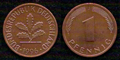 1875-1936 1/2 Mark (1/2 Марки) 1911Подробнее о монете 1 Reichsmark (1 Рейхсмарка) 1934Подробнее о монете 2 Reichs Mark (2 Рейхс Марки) 1936Подробнее о монете 2 Pfennig (2 Пфенига) 1875Подробнее о монете 1948-1953 1 Pfennig (1 Пфениг) 1948Подробнее о монете 1 Pfennig (1 Пфениг) 1952Подробнее о монете 1 Pfennig (1 Пфениг) 1953Подробнее о монете 1 Pfennig (1 Пфениг) 1953Подробнее о монете 5 Pfennig (5 Пфенигов) 1950Подробнее о монете 10 Pfennig (10 Пфенигов) 1948Подробнее о монете 10 Pfennig (10 Пфенигов) 1949Подробнее о монете 1950-1996 1 Pfennig (1 Пфениг) 1950Подробнее о монете 1 Pfennig (1 Пфениг) 1988Подробнее о монете 1 Pfennig (1 Пфениг) 1996Подробнее о монете 2 Pfennig (2 Пфенига) 1991Подробнее о монете 5 Pfennig (5 Пфенигов) 1976Подробнее о монете 5 Pfennig (5 Пфенигов) 1988Подробнее о монете 10 Pfennig (10 Пфенигов) 1987Подробнее о монете 10 Pfennig (10 Пфенигов) 1989Подробнее о монете 10 Pfennig (10 Пфенигов) 1994Подробнее о монете 10 Pfennig (10 Пфенигов) 1995Подробнее о монете
