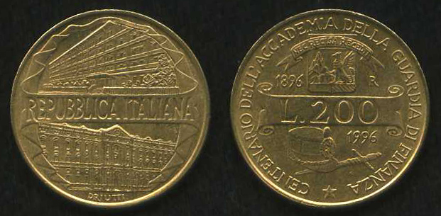 500 Lira (500 Лир) 1989Подробнее о монете 200 Lira (200 Лир) 1996Подробнее о монете 100 Lira (100 Лир) 1979Подробнее о монете 50 Lira (50 Лир) 1979Подробнее о монете 10 Lira (10 Лир) 1954Подробнее о монете 20 Centesimo (20 Чентезимо) 1908Подробнее о монете