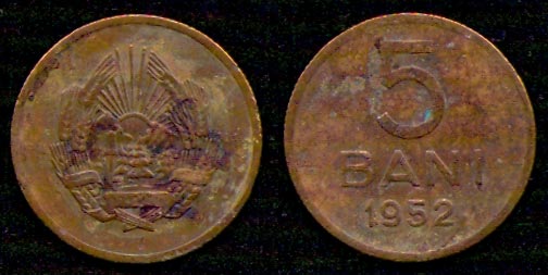 50 Bani (50 Баней) 1997Подробнее о монете 25 Bani (25 Баней) 1993Подробнее о монете 25 Bani (25 Баней) 1995Подробнее о монете 10 Bani (10 Баней) 2004Подробнее о монете 5 Bani (5 Баней) 1952Подробнее о монете