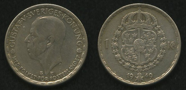 1 Kroner (1 Крона) 1949Подробнее о монете
