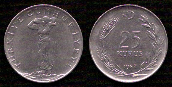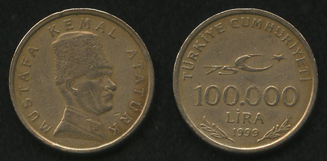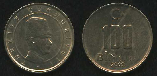 100000 Lira (100000 Лир) 1999Подробнее о монете 100 Bin Lira (100000 Лир) 2002Подробнее о монете 50 Yeni Kurus (50 Новых Куруш) 2005Подробнее о монете 25 Kurus (25 Куруш) 1968Подробнее о монете 10 Yeni Kurus (10 Новых Куруш) 2005Подробнее о монете